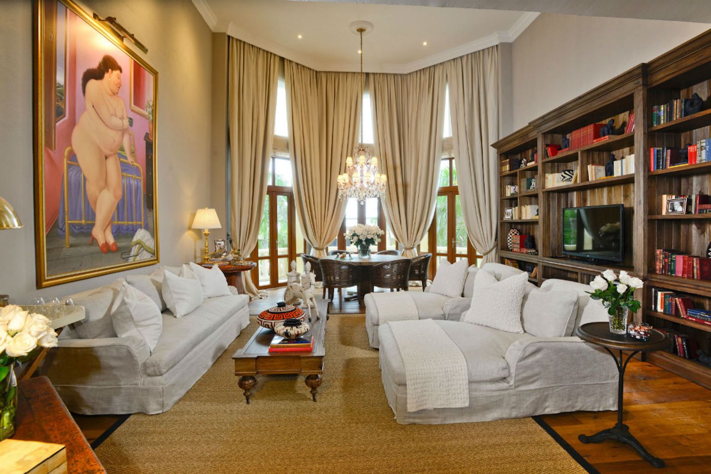 One luxury suite that does retain very high ceilings is one in the original building that overlooks the pool: the Botero Suite. Essentially the hotel’s presidential suite, the suite includes a master bedroom, a living area, a kitchenette, a full bathroom, and a hallway bathroom. The room is especially significant as it was designed by the lauded Colombian artist Francisco Botero himself along with his daughter Lina Botero. (Although most of the paintings in the room are approved replicas of his work.)