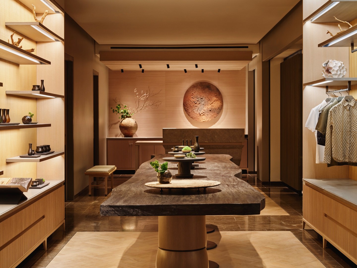 From a design aesthetic perspective, the interior of the spa lobby and boutique is much lighter in color, which is meant to open the aura. Aman touts itself as a spiritual brand, and it very much believes in energy and wanting to design a space that helps guests with that. The 24-hour fitness center is a bright space with the same lighter tone wood panels and floor to ceiling windows, with an array of Technogym cardio machines—and even a pair of infrared machines (one treadmill and one elliptical) so that guests and members can train in alternative conditions. (For example, even if the thermostat is set at a moderate room temperature in the gym, a guest can adjust the settings in these machines for warmer or colder temperatures with varying humidity should they be training for a marathon somewhere else.) And just outside the fitness center, there is a fully standalone cryotherapy chamber (not just pods), where guests and members can reserve a three-minute time slot for an extra deep freeze to get the blood moving.