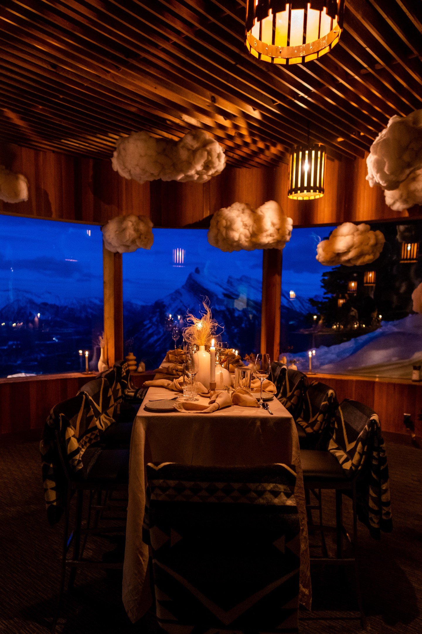 Haute O2 itself is really a pop-up…for now, at least. Most of the year, the space is formally the Cliffhouse Bistro, accessible only by the North American Chairlift on Mt. Norquay, looming large over the popular resort town of Banff Springs in Alberta, Canada. It’s also used as the base for the Via Ferrata climbing and adventure tours.