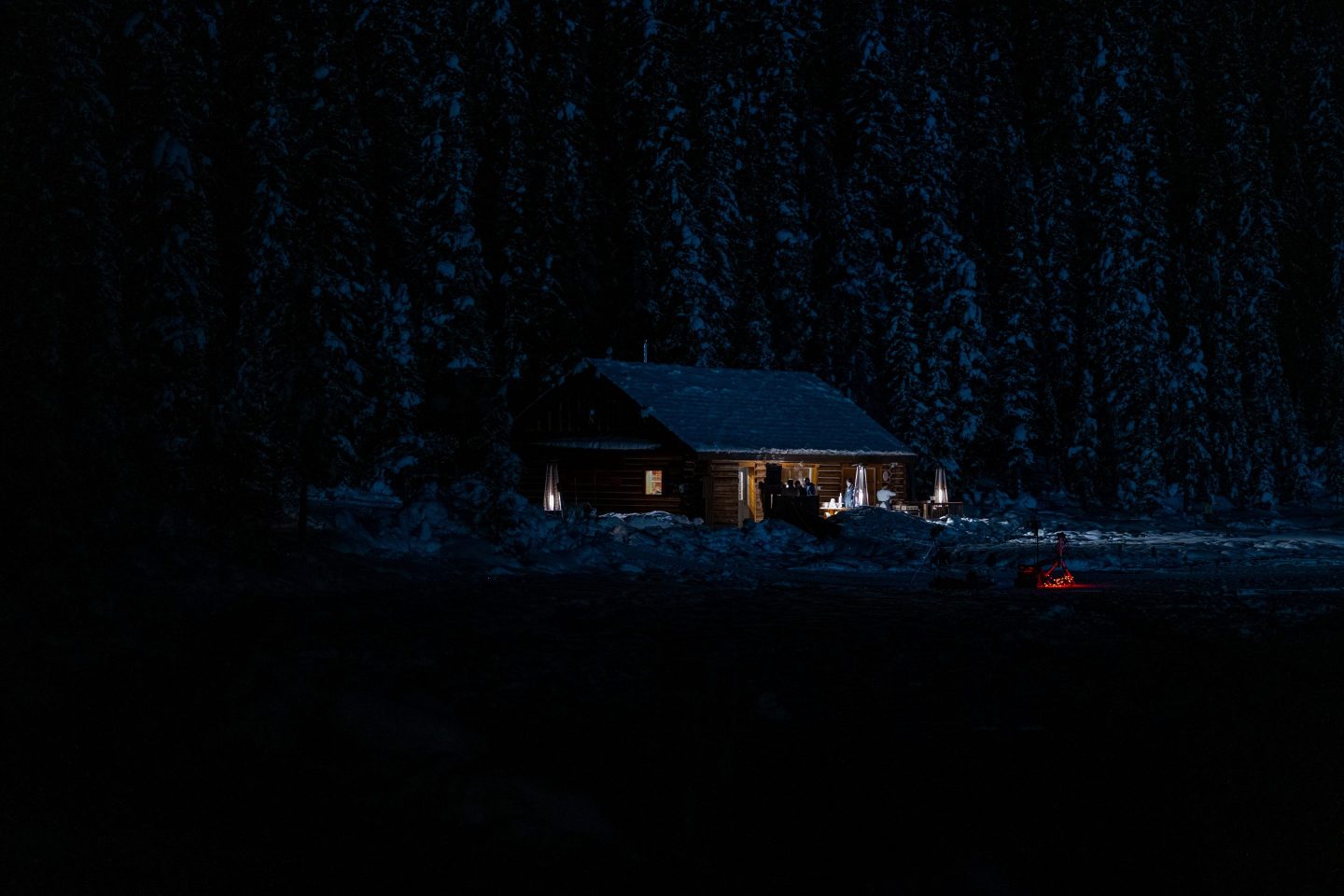 Less than an hour drive from the Fairmont Banff Springs, the Fairmont Chateau Lake Louise is also hosting a special dining experience in a cozy log cabin (normally the site of the cross-country ski school) right next to the (currently frozen) Lake Louise.
