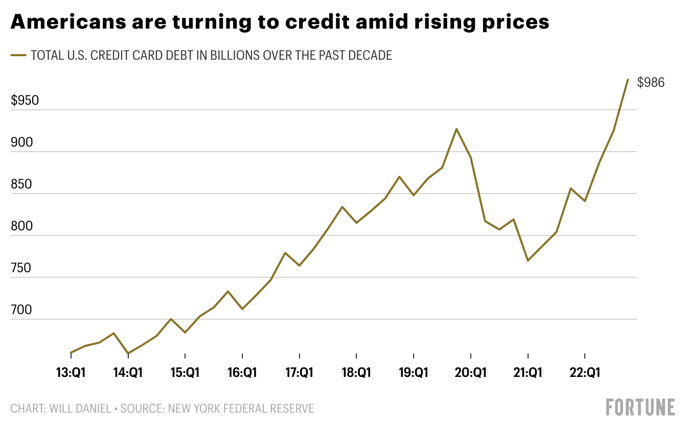“Robust consumer spending, the hottest inflation readings in 40 years and sharply higher credit card rates have combined to push credit card balances to a new record high,” he told Fortune Thursday, noting that 46% of credit cardholders now carry credit card debt compared to 39% a year ago.