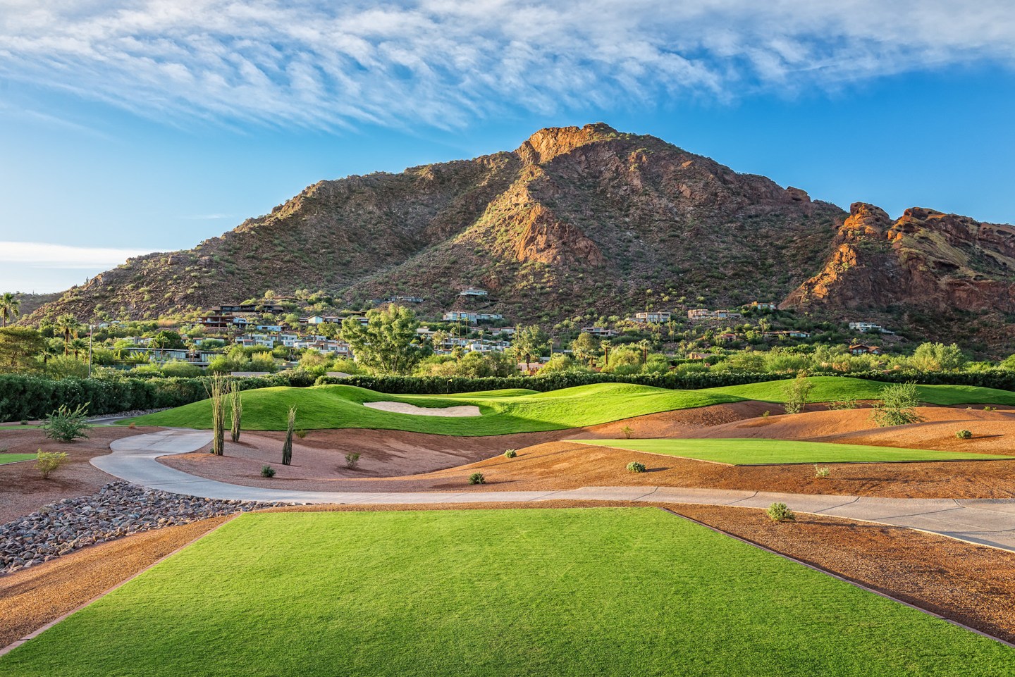 Completely rebuilt from the ground up, the new Mountain Shadows Resorts Scottsdale first opened April 1, 2017 as a boutique resort with fully furnished luxury resort condominiums. Guests have full access to a bevy of amenities onsite, including two 75-foot swimming pools, an art gallery, a boutique showcasing local brands, a state-of-the-art fitness center, valet parking (as well as access to a Tesla Model X courtesy car), and what is touted to be Arizona’s only 18-hole, par-3 golf course, designed by Forrest Richardson, an acclaimed golf course architect.