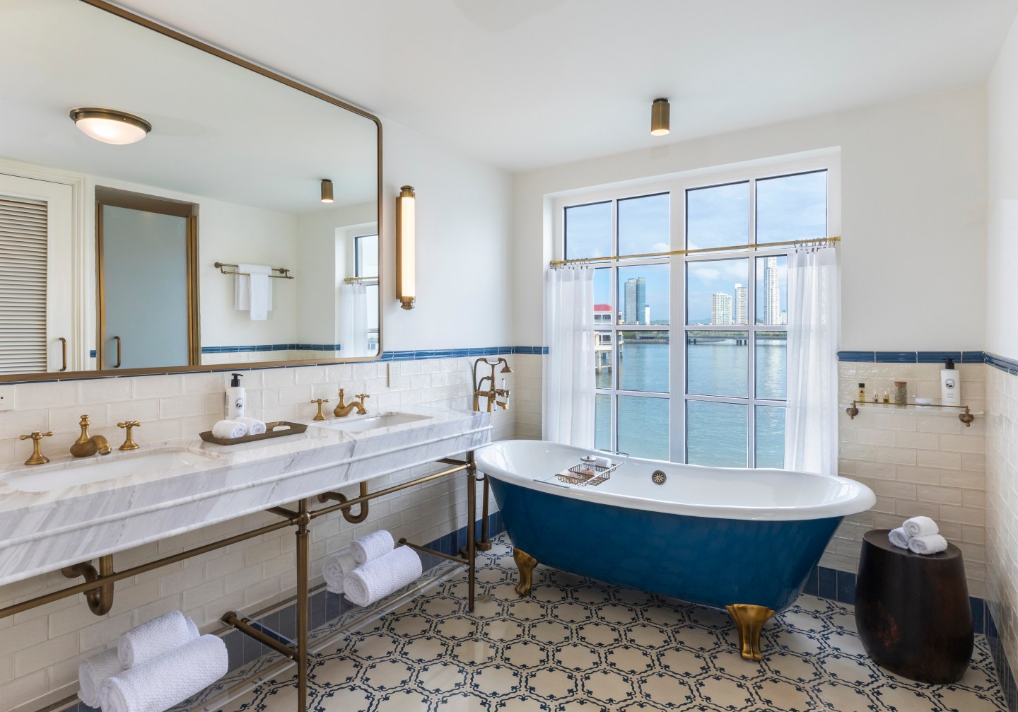 Nestled on an waterfront enclave in Casco Viejo (“Old Quarter” in English), all of the suites have sweeping views, whether of the Pacific Ocean, the old city, or Panama’s glittering and seemingly never-ending skyline of white skyscrapers. The original structure was built in 1917, originally serving as the home of Club Unión, an exclusive social club in the 20th century, the building welcomed some of the most notable names of the century, including Queen Elizabeth II and Albert Einstein. In 1968, it became the Officers’ Club until the end of the Noriega dictatorship in 1989.