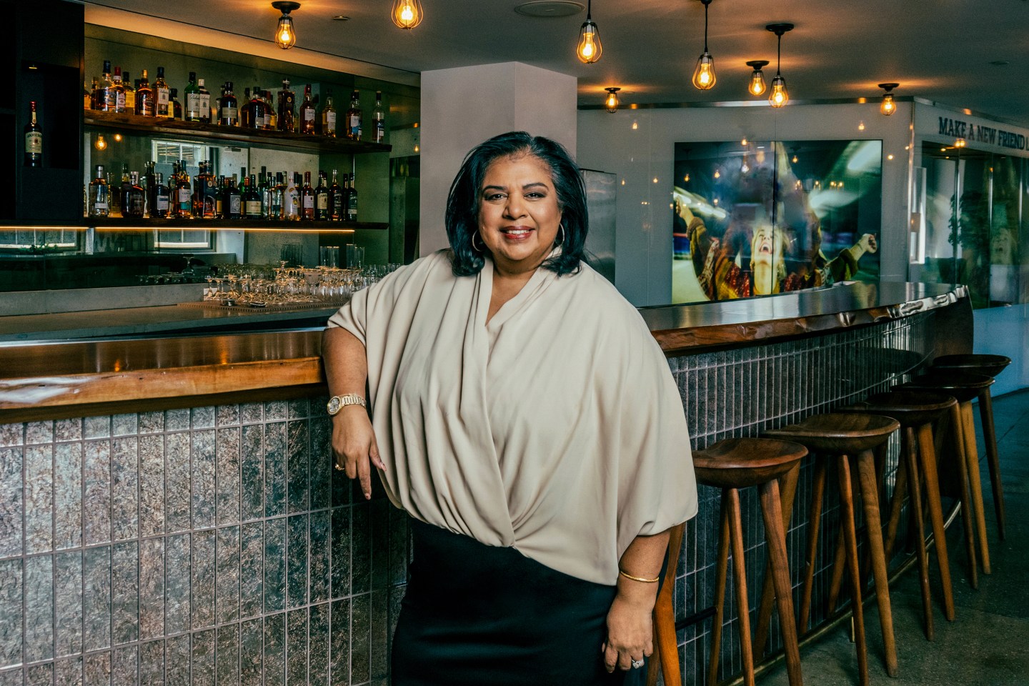 “If this were a world that only serviced needs and not wants, it would be a tough world to live in. My entire career has been about helping people enjoy life but doing it in a responsible way, with moderation,” she says. That’s what Mukherjee says she does, choosing a dirty Absolut martini on a date night with her husband and Scotch at home with her girlfriends.