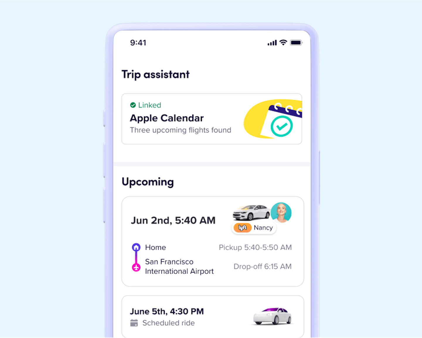 Lyft is also adding new personal assistant features to making traveling a bit easier. For iOS users, customers can connect Apple Calendar to the Lyft app to get reminders about booking airport rides. Flight and terminal info will automatically appear in the Lyft app for easy reference. For Android users, customers can opt for Google Assistant travel notifications to book an airport ride, using traffic predictions to suggest to riders when it’s a good time to book a ride.