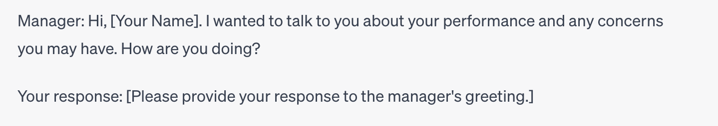 The more detail you feed ChatGPT with, the more detailed the chat with your imaginary manager will be.