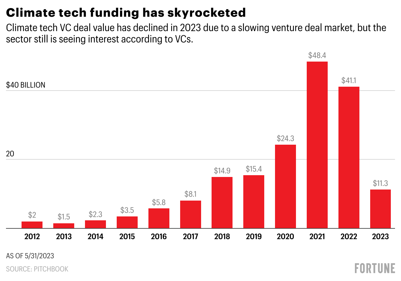 Another piece of tech that is seeing a boom? Carbon removal. “VC investment in carbon removal tech has also been growing strongly – in the US, the Inflation Reduction Act’s support for carbon removal is particularly strong,” explained MacDonagh. One recent example is carbon removal firm Charm announcing their $100 million Series B today. General Catalyst led the round.