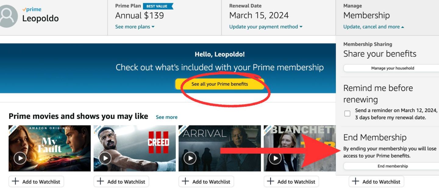 The FTC says there were also warning icons that appeared near the cancellation option, evoking a feeling of anxiety and fear of loss for members. While no such anxiety-inducing icons are seen in the current screenshot, the wording near the option to end a membership speaks directly to members, telling them “you will lose access to your Prime benefits.”