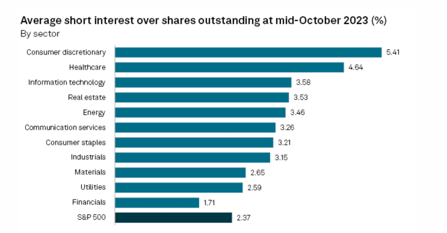 As of mid-October, consumer discretionary stocks continue to draw the highest amount of short interest, at 5.41%, due to investors seeing persistently high inflation impacting consumer demand, according to a new report by S&P Global Market Intelligence.
