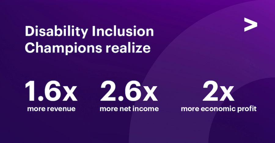 A new research report from Accenture (NYSE: ACN) in partnership with Disability:IN and the American Association of People with Disabilities finds companies that lead in disability inclusion drive more revenue, net income, and profit. The report identifies that, over the last five years, the business case for hiring persons with disabilities has become even stronger. Specifically, companies that have led on key disability inclusion criteria over that time saw 1.6 times more revenue, 2.6 times more net income, and 2 times more economic profit than other companies in the DEI. Also, leaders are more likely to outperform industry peers in productivity by 25%.