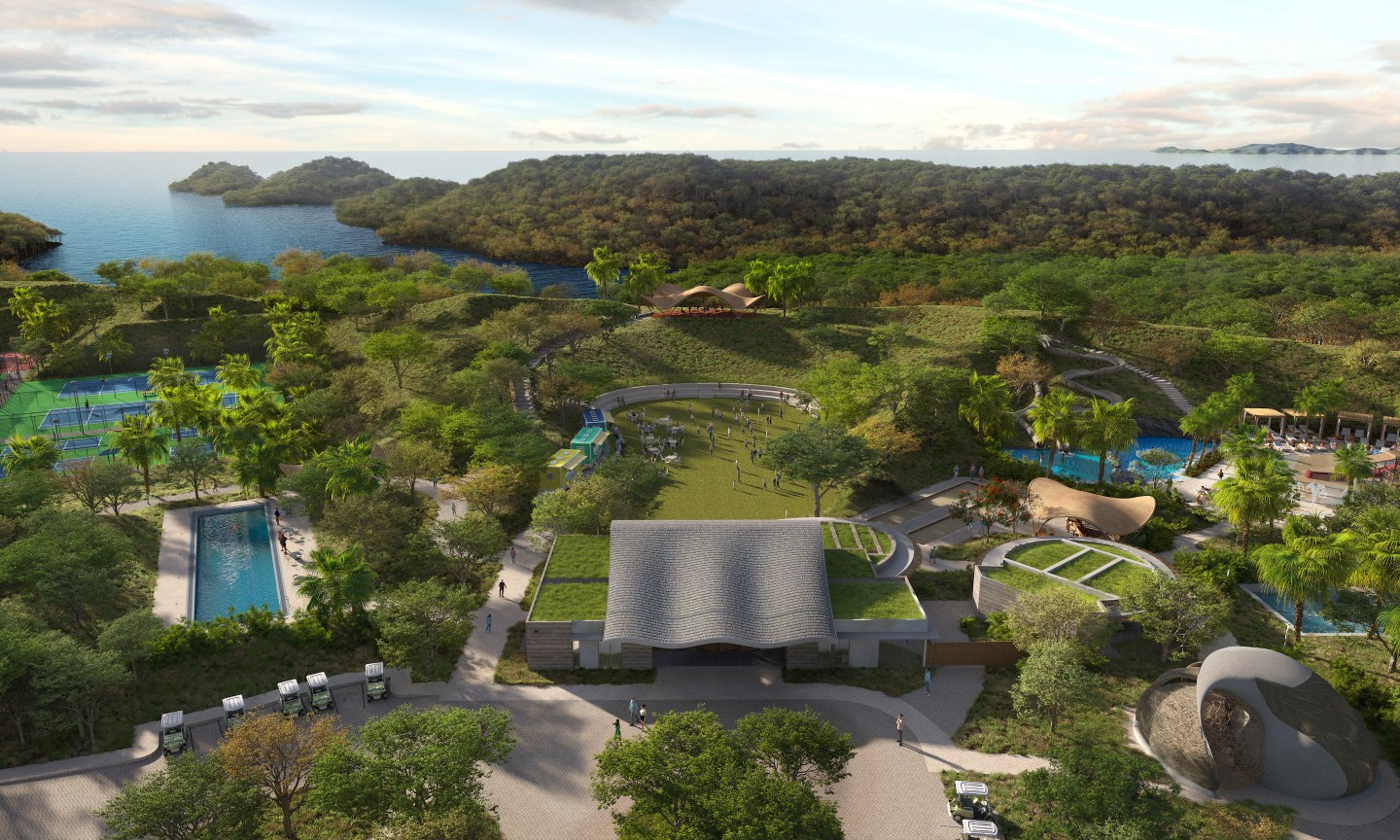 And later this year, nearly 20 acres on Peninsula Papagayo’s east plateau is being transformed into a next-generation sports park, a center for nature-meets-movement activities for all ages from surfing and swimming to yoga and climbing. Adjacent to the sports park clubhouse, a landscaped green space the size of a soccer field has been designed to unite the community. Residents and guests can mingle over lawn games, pick-up sporting events, and pop-up food trucks. There will be a surf simulator, a water park, paddle and pickleball courts, bocce ball courts, an outdoor amphitheater for festivals and live music performances, and a dog park alongside the multipurpose lawn.