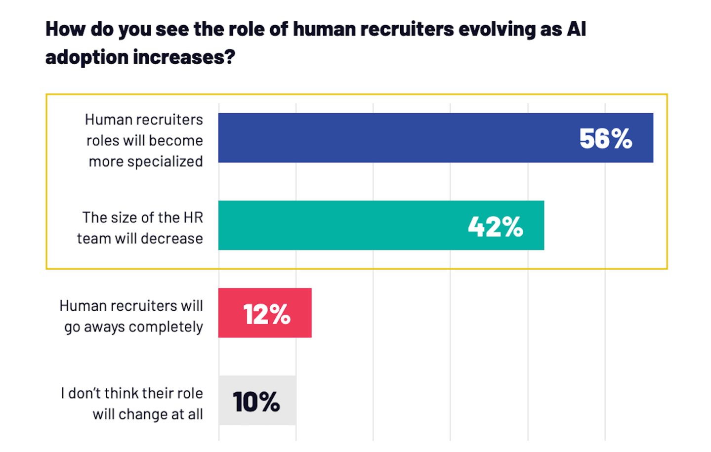 More than half (56%) of respondents expect HR teams to become more specialized, and 42% said HR teams will become smaller. Another key finding is ethical considerations like bias and privacy were important to 92% of respondents, according to the report. Some common strategies for addressing bias include fairness-aware algorithms and human oversight.
