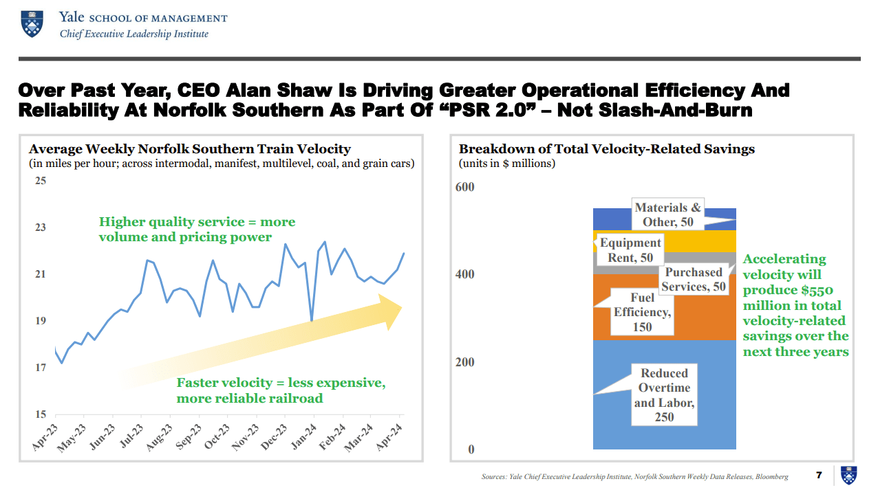 But Ancora’s plans, which essentially amount to doubling down on a wildly unrealistic, exaggerated rip-off of PSR 1.0, threaten to derail all the progress Alan Shaw has made towards recapturing revenue growth. As Surface Transportation Board Chairman Marty Oberman said in no uncertain terms, “Clearly, Ancora’s plan is to install a CEO ordered to reverse Norfolk Southern’s recently instituted corporate strategy to maintain a resilient workforce and to invest more in infrastructure to grow the railroad’s capacity long term…Norfolk Southern has been one of the leaders in shifting gears and building workforce and capital investment for the future. Now it threatens to be punished for that activity by an activist investor.”