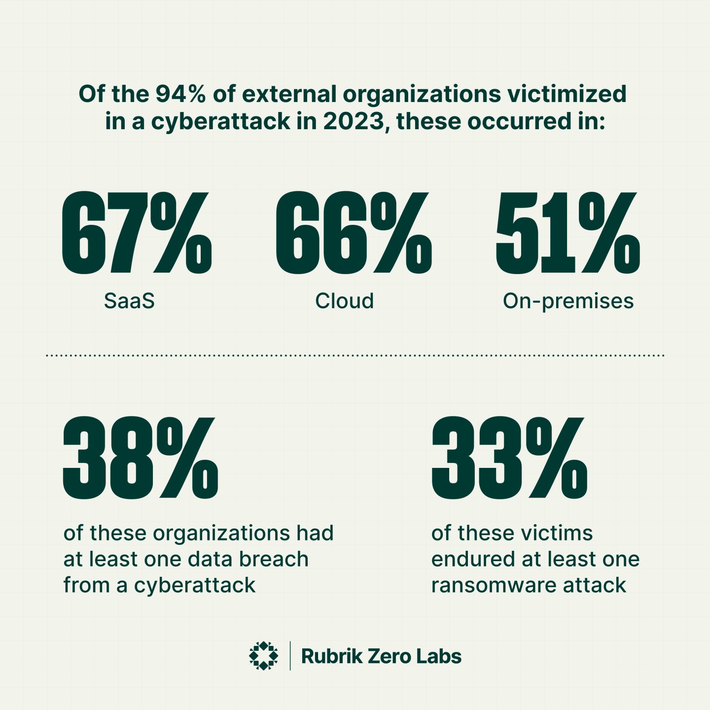 A new research study by Rubrik found that as organizations become more dependent on the cloud, new security blindspots are emerging. Among the organizations that were stung by a cyberattack last year, Rubrik also found that many were attacked across multiple areas of their hybrid environment, with 67% of attacks impacting SaaS data, while 66% occurred in the cloud and 51% for on-premises locations.