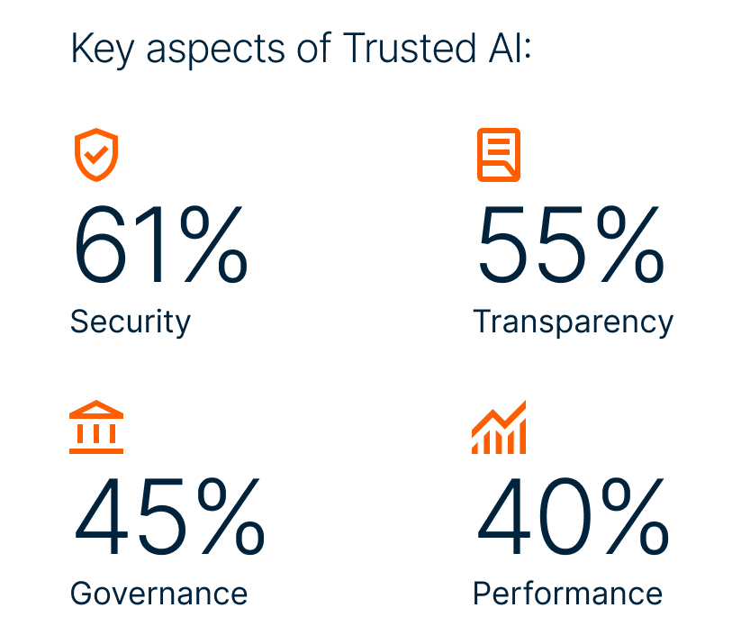Security, transparency, governance, and improving the company’s performance were cited as key aspects of trusted AI. In other findings, most of the respondents (84%) said they expect to see results from AI projects within a year of deployment, and more than half (58%) said the results would be quantifiable within six months.