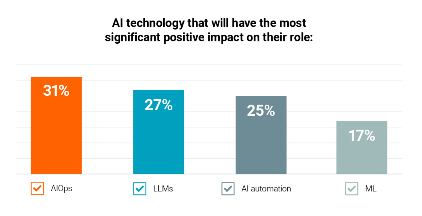 IT pros cited AIOps (using artificial intelligence to streamline IT operations and service delivery) as the AI technology that will have the most significant positive impact on their role (31%). That ranks above large language models (27%). To ensure successful and secure AI adoption, IT pros recognize that organizations must develop thorough policies on ethics, data privacy, and compliance, according to the report.