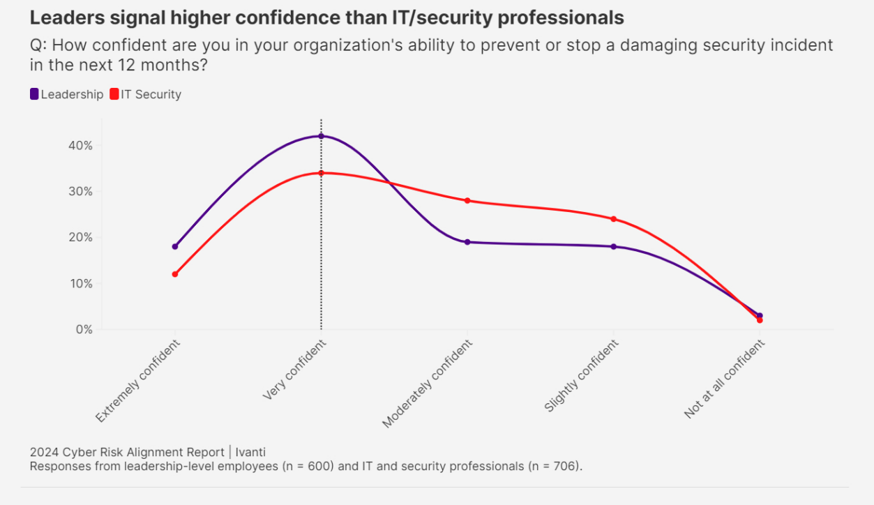 A cybersecurity disconnect. A pair of studies published by IT software provider Ivanti may indicate that leadership is overconfident in their company’s ability to prevent or stop a cybersecurity incident. Two surveys, conducted by Ivanti in late 2023 and earlier this year of 3,059 leaders and IT professionals, found that 60% of non-IT leaders are “very” or “extremely confident” about cyber safeguards.