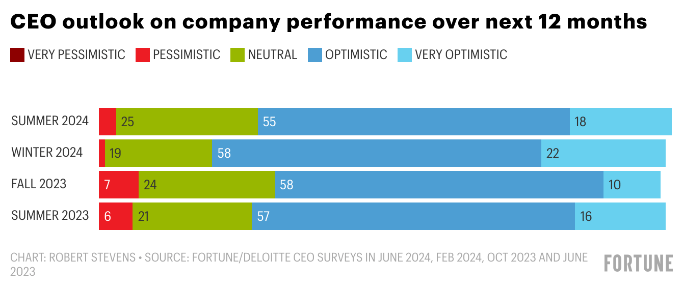 *Methodology: Fortune surveyed CEOs in collaboration with Deloitte between June 11 to June 26. A total of 83 responded to the survey, which was sent to the Fortune CEO Community. That includes chief executives from Fortune 500 and Global 500 companies as well as those attending Fortune conferences.