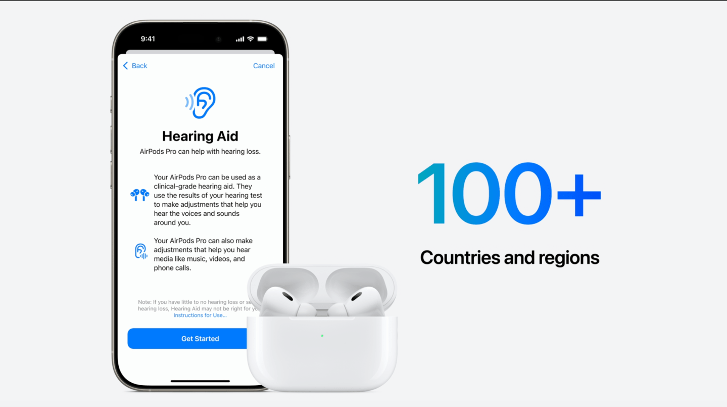 Apple will also release a 5-minute clinically validated hearing test that will be stored in the Health App as part of the hearing aid offering, which it said will be available in more than 100 countries this Fall following authorization from global health authorities.