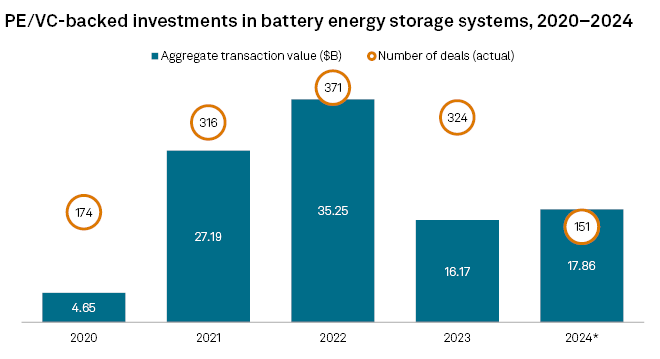 Demand for electric vehicles and renewable energy has driven increased private equity and venture capital investments in battery energy storage, according to a recent report from S&P Global. As of Aug. 20, aggregate deal value in the space stood at $17.86 billion, compared to $16.17 billion last year.