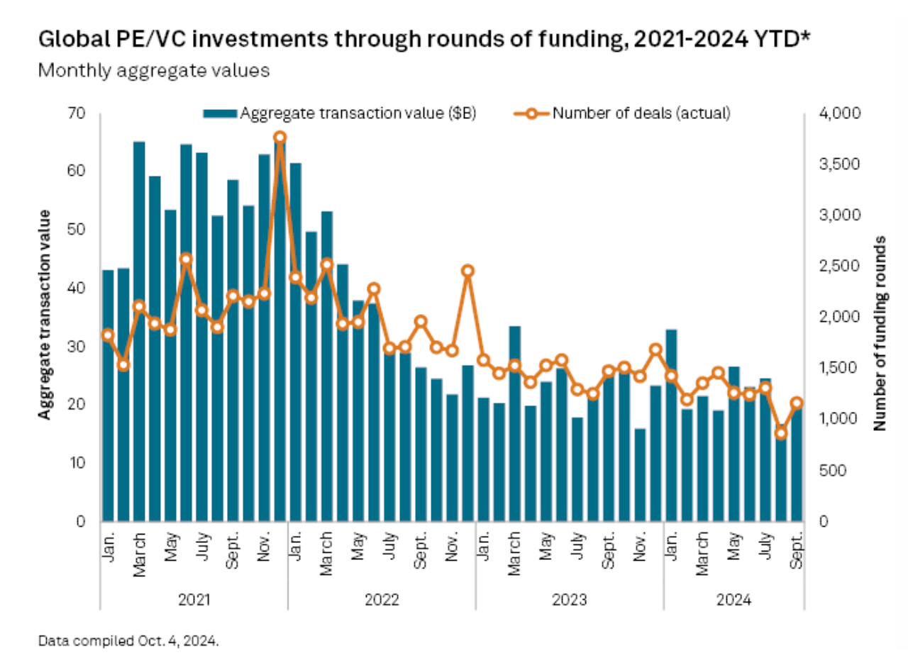 A difficult market for venture capital hasn’t picked up much steam. Global VC rounds decreased in both deal value and volume for the third quarter, according to a new report from S&P Market Intelligence.