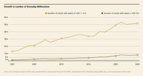 At the dawn of the millennium, there were just over 13 million EMILLIs worldwide, according to UBS Global Wealth Management. Fast forward to the end of 2024, and that number had “skyrocketed” to nearly 52 million—a more than fourfold increase in less than a quarter-century. Even after adjusting for inflation, the number of EMILLIs has more than doubled in real terms since 2000.