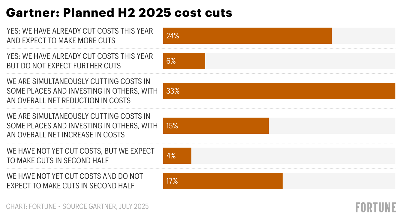 Another key finding: 67% of finance leaders are either in the process of cutting costs, have already completed cost reductions, or plan to do so in the second half of the year.