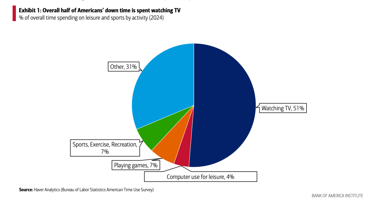The change is more about delivery than demand. The Bureau of Labor Statistics’ American Time Use Survey shows Americans still devote about five hours a day to leisure, with more than half of that time spent watching TV.