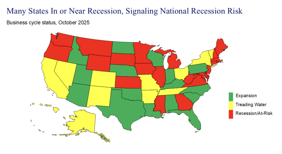 In social media posts on Wednesday, he reiterated his warning that states representing nearly one-third of nationwide GDP are already in a recession or at high risk of one. Another third is “treading water,” while the rest are still growing but suffering from less momentum.