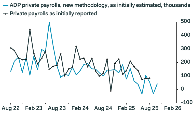 Deutsche Bank argued that a December cut was now less likely. “Private payrolls were up by +42k in October (vs. +30k expected), which was a clear rebound from the -29k contraction in September. That’s a release that’s taken on more significance than usual, given we’re missing the usual jobs report because of the shutdown,” Jim Reid and his team at Deutsche Bank told clients this morning. “The U.S. outlook was more resilient than feared.