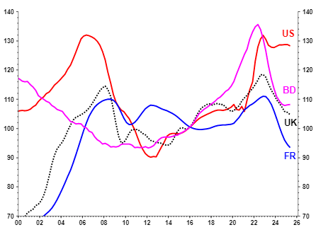 “What’s more worrying about the AI bubble,” Edwards told Fortune, “is how much more dependent the economy is on this theme, not just for the business investments, which is driving growth,” but also the fact that consumption growth is being dominated far more than normal by the top quintile. In other words, the richest Americans who are heavily invested in equities, are driving more of the economy than during previous bubbles, accounting for a much larger proportion of consumption. “So the economy, if you like, is more vulnerable than it was in the ’87 crash,” Edwards explained, with a 25% or greater correction in stocks meaning that consumer spending will surely suffer—let alone a 50% lurch.