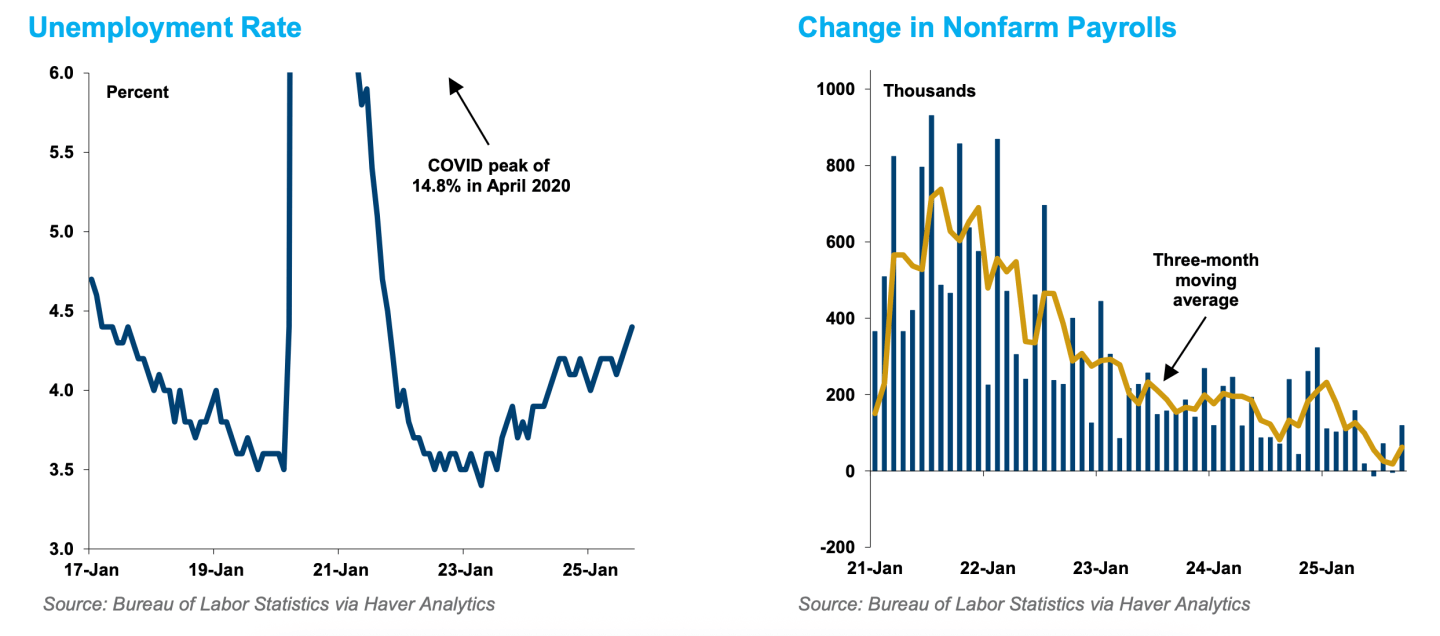 The U.S. government shutdown made employment data harder to come by, but most analysts think the labor market is getting weaker. These charts from Daiwa Capital Markets’ Lawrence Werther and Brendan Stuart say it all. Unemployment is trending up and job creation is trending down: