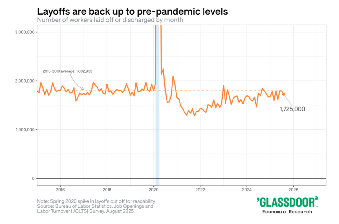 Daniel Zhao, chief economist for Glassdoor, noted in an interview with Fortune that this actually understates the typical, true number of layoffs, citing federal data from the JOLTS survey that roughly 1.7 million people had been laid off over the same period. “The interesting thing that we saw in our research is that the shape of these layoffs is changing,” he said. “So instead of these large one-off layoffs, we’re seeing rolling layoffs and even some smaller layoffs as well.”