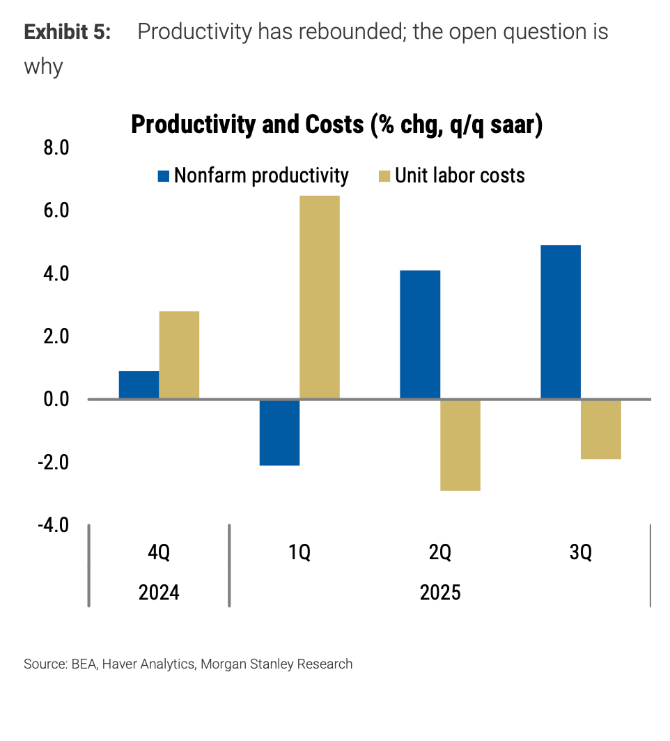 “We believe much of the rise is cyclical,” Morgan Stanley economists noted in the report, adding that “it remains an open question as to what is driving the productivity acceleration.”