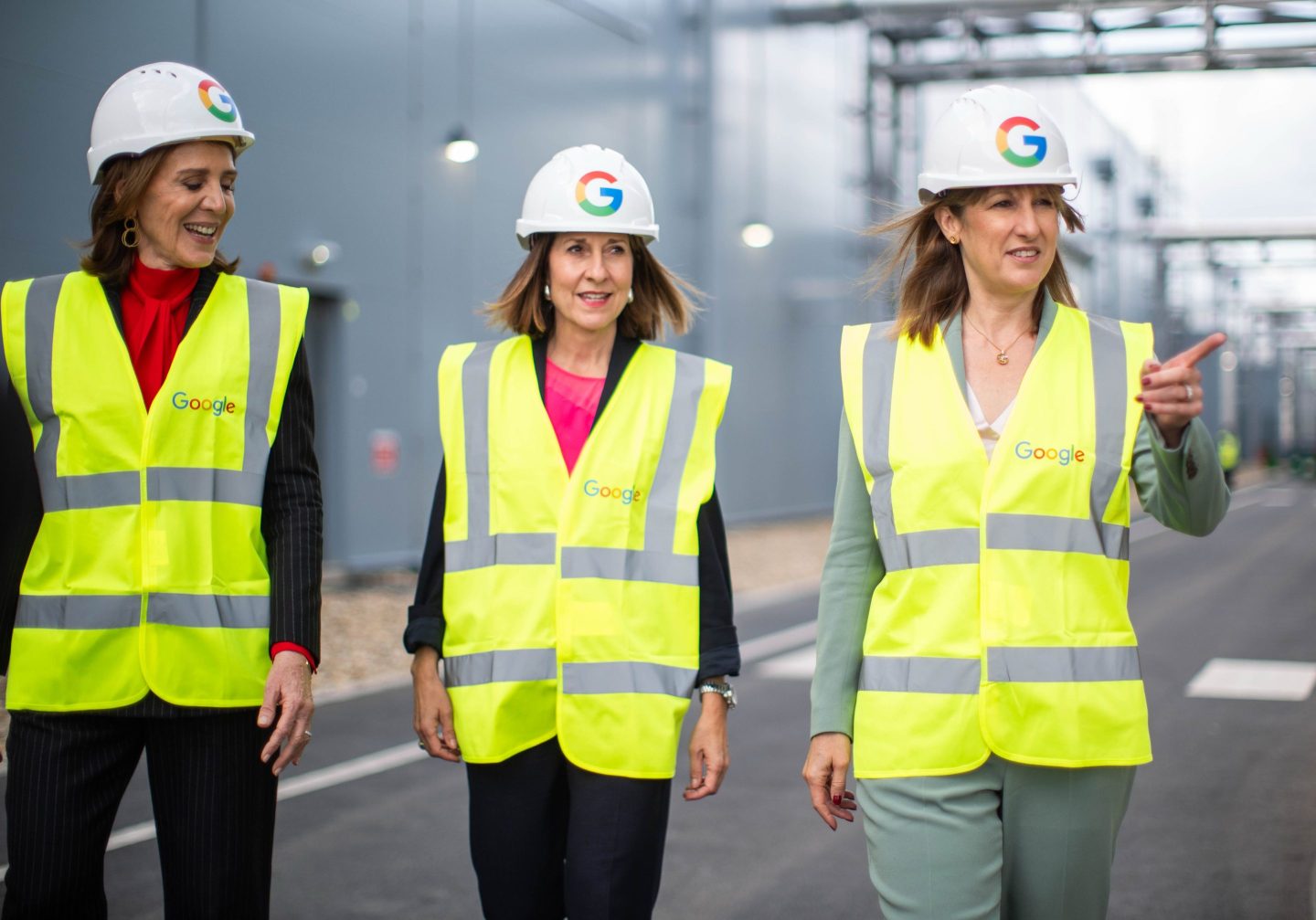 Alphabet’s Ruth Porat (left) tours a newly opened data center in England in 2025.