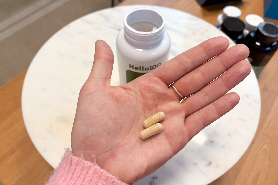 Our tester Pete described the Hello100 Lion’s Mane packaging as clean. This supplement comes in a white plastic container with a screw top lid that opens and closes easily, according to Pete. “The label has a clean look, and the large font makes the text easy to read,” he added, rating his first impression 5 out of 5. However, he called out a key drawback on the label: “There is no suggested use or instructions on the label. The only information is the ‘serving size two capsules’ on the supplement facts label,” which led him to rate instruction clarity just 1 out of 5.
