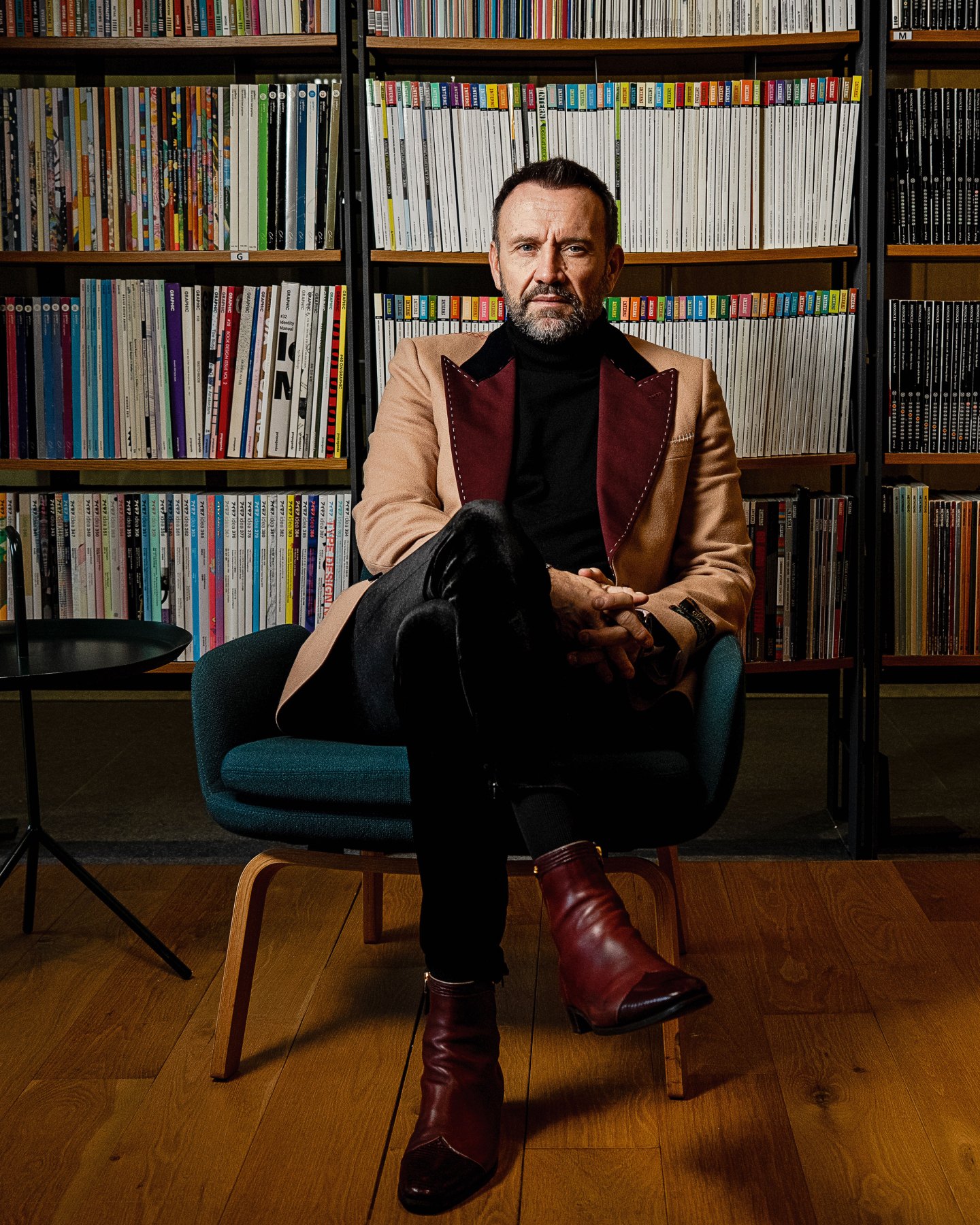 Porcini seems slightly out of place in the Korean chaebol’s offices. Hailing from Gallarate, a small town outside Milan, Porcini wears plaid trousers with white stripes down the side, platform boots, and a beige jacket with red lapels—a contrast to the more plainly dressed Korean designers and office workers who sit at Samsung desks. (He dressed slightly differently, but just as sharply, for our photo shoot.) Porcini says his clothes are a way to express his individuality in the boardroom: “This is what designers do…They look at reality, they look at their world, and have a unique and original point of view on what they need to do,” he told Fast Company last year, after the publication dubbed him one of its “Best Dressed in Business.”