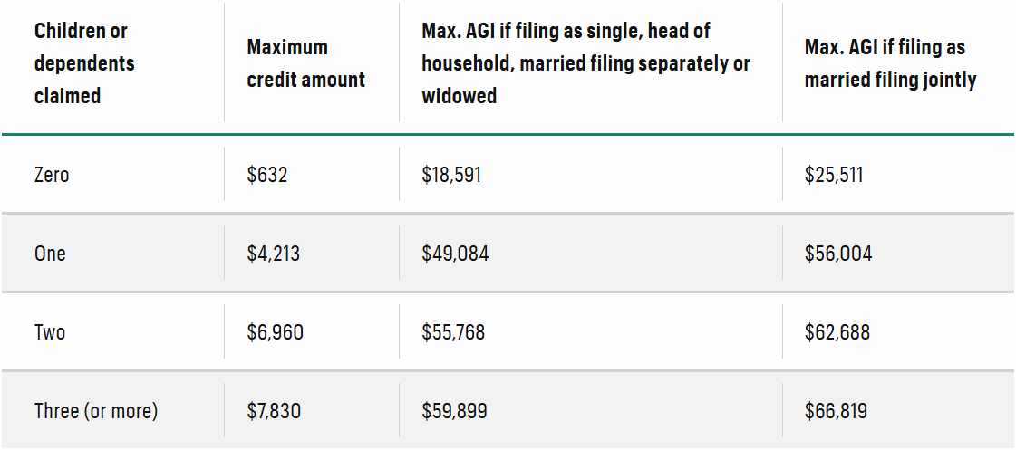 The amount of the EITC varies based on income and the number of qualifying children. It has a maximum credit, which increases with each child, up to a limit. For tax year 2024, the maximum credit amounts and adjusted gross income (AGI) limits are: