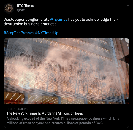In which Bitcoiners call the NYT a tree-murdering “wastepaper conglomerate”: