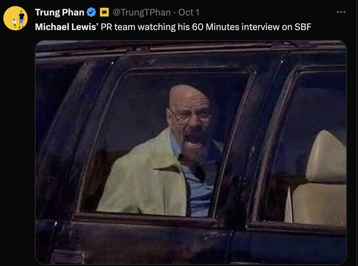 All of this has predictably led to Lewis getting skewered on social media. Jesse Eisinger, an authority on white-collar crime, ripped him for writing a “hagiography” even after learning of the “rampant and obvious fraud.” Others declared that Lewis had “discredited himself and damaged his reputation” and that he had become Bankman-Fried’s “last and most willing victim.”