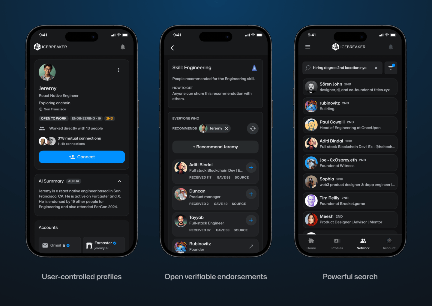 “Icebreaker was created to empower professionals to seamlessly tap their existing profiles and networks to surface exceptional people and opportunities, using recent advancements in cryptographically verifiable identity,” the company said, adding that the new funding will go to scaling its team and product building.