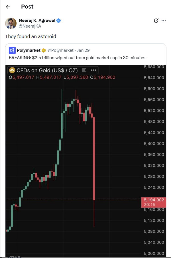 It’s not just Bitcoin: The precious metals rally came to a screeching halt as gold and silver plummeted dramatically following months of record gains.