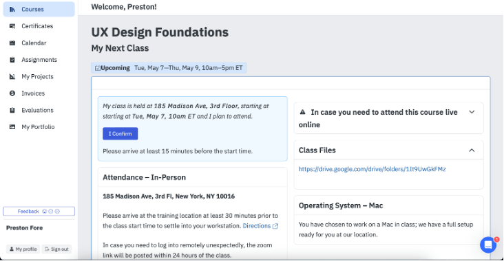 For those wanting an affordable way to learn UX/UI skills from a company that has been in the space for decades, Noble Desktop is undoubtedly a safe bet. Having synchronous classes (including options: full vs. part-time and online vs. in-person) is one large added benefit since students can get help when they’re stuck, ask questions and get immediate responses, and collectively learn with peers.