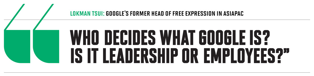 Google has already transformed so many aspects of the way we work today. The walkout was an inflection point, a sign that the company is now poised to disrupt something even more foundational to our economic system: the relationship between labor and capital. It’s a shift that could perhaps begin only in Silicon Valley, a place that has long believed itself above such traditional business concerns—and, more to the point, only at this company, one that hired and retained employees on the premise of do no evil. Now employees seem determined to view that manifesto through their own lens and apply it without compromise, even at the cost of the company’s growth. “Who decides what is the soul of Google and what Google is?” asks Lokman Tsui, formerly Google’s go-to executive on issues of free expression and censorship in Asia and the Pacific. “Is it leadership or employees? There’s a real battle for the soul of these companies right now.”