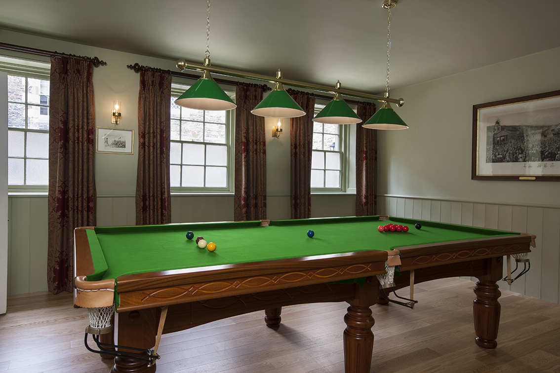 The Hope Scott Wing is in keeping with the baronial design of the conundrum castle next door and embraces 19th-century living: whether it’s resting in the master bedroom’s replica Chippendale four-poster bed, unwinding in a claw-foot tub, or inhaling the aroma of 1800s hardbacks. A fireplace and grand piano warm a jovial evening in the sitting room, and the snooker room encourages cheeky competition enriched with single malts.