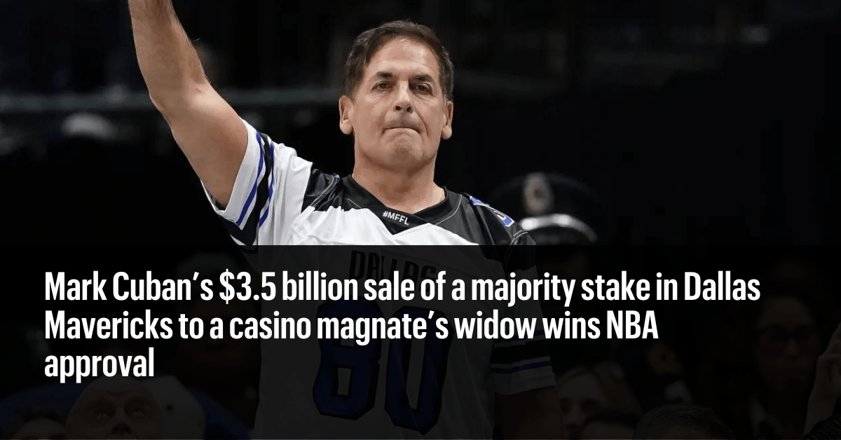 LifestyleMark Cuban’s $3.5 billion sale of a majority stake in Dallas Mavericks to a casino magnate’s widow wins NBA approval