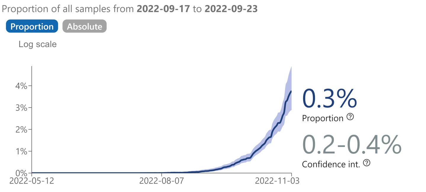 The newly singled-out strain was estimated to comprise just over 4% of U.S. infections through Saturday, making it the sixth most common variant in the country. It came in just above BA.4.6, a descendant of Omicron spawn BA.4, which was prominent globally this summer.