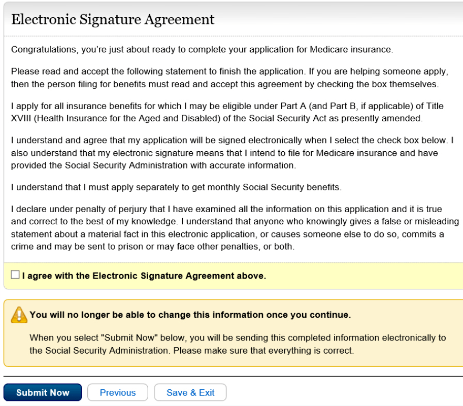 9. Sign the application when you’re ready, and then submit it. You’ll no longer be able to modify information in your application after you click “Submit Now.”